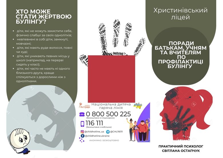 - Національна дитяча гаряча лінія: 0 800 500 225 (безкоштовно, анонімно).