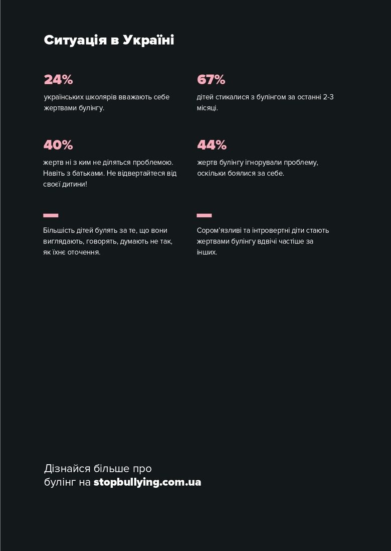 Важливо знати, що булінг — це не просто погана поведінка, а правопорушення. З 2019 року в Україні діє Закон № 2657-VIII, який вніс зміни до Кодексу України про адміністративні правопорушення.